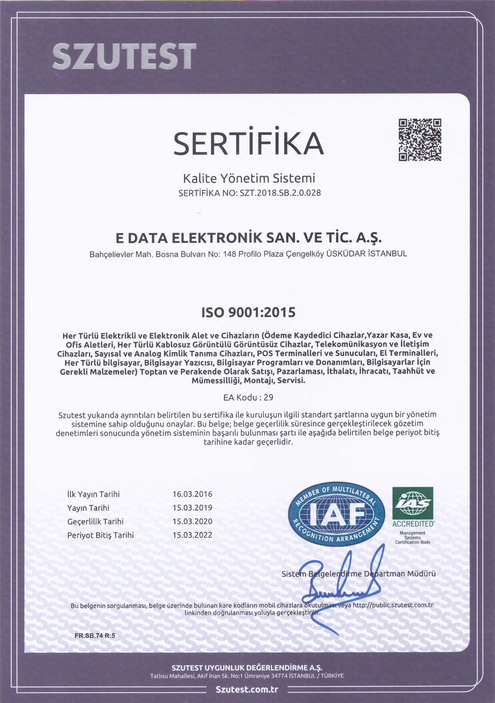 We continue to spread the philosophy of quality throughout the company with the aim of carrying the developing and changing product and service concept beyond the needs and expectations.