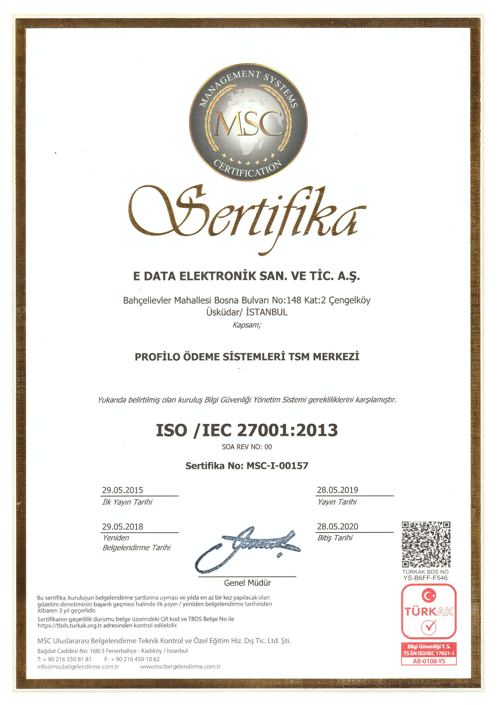 | ÖKC TSM Center | TS ISO / IEC 27001 |