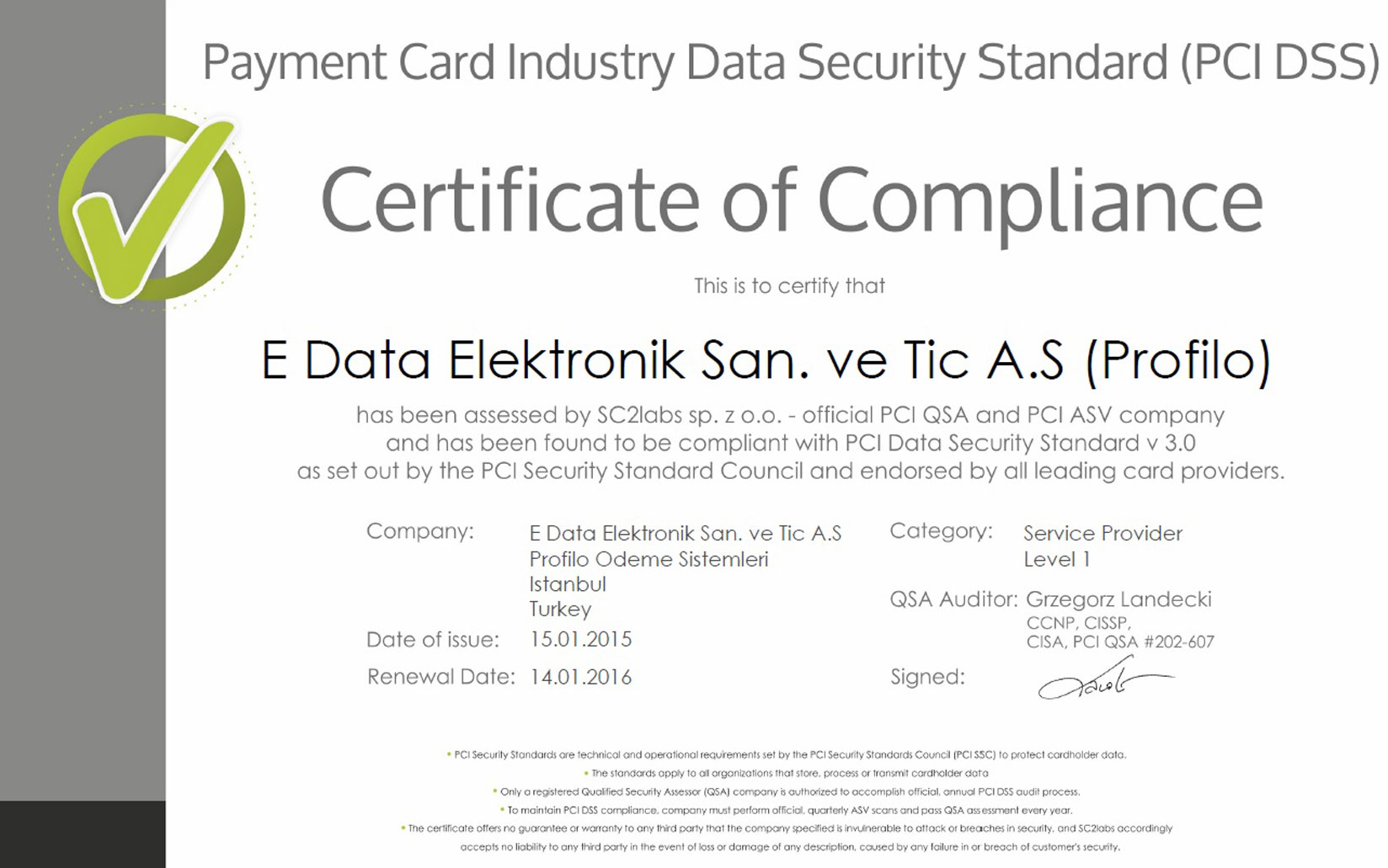 | Product | Service Qualification Certificate |