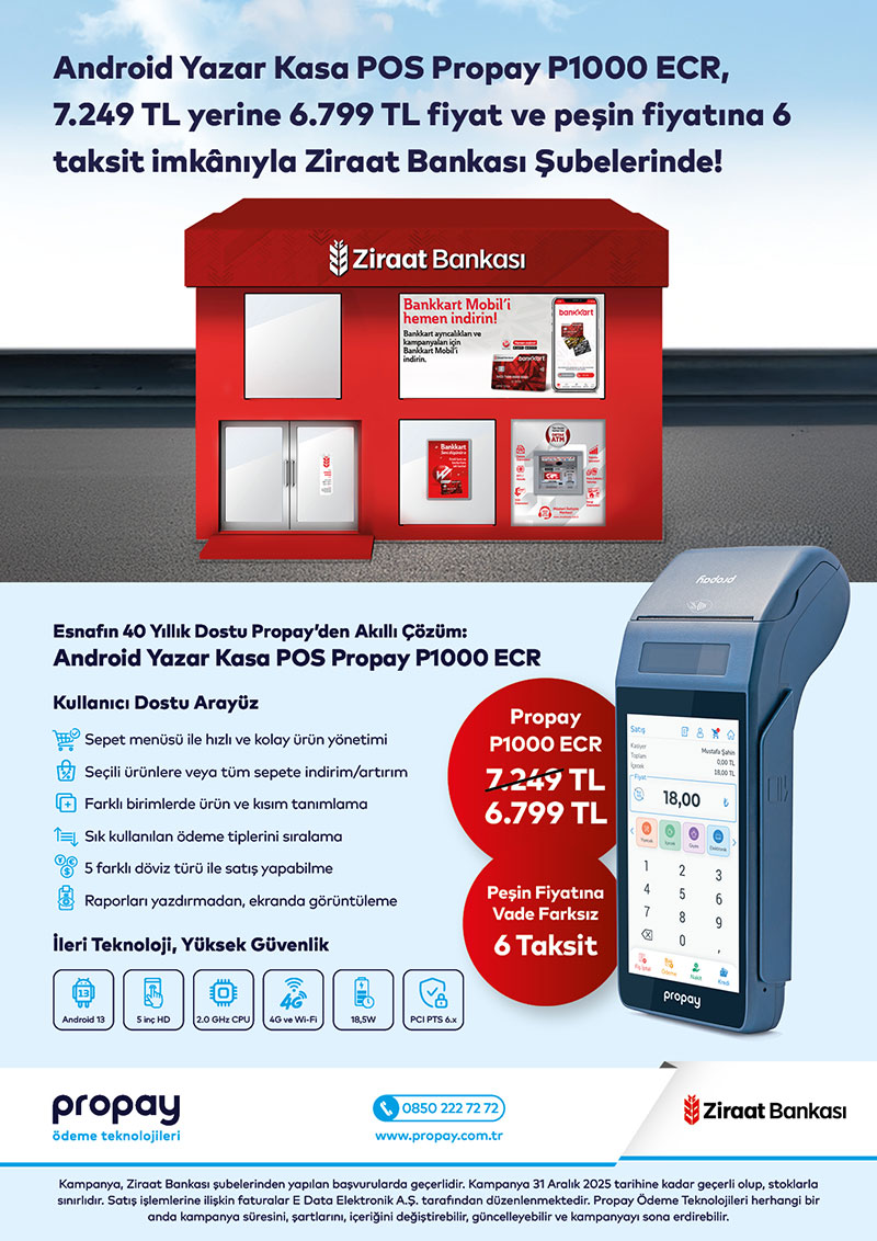 Propay P1000 ECR, Avantajlı Fiyat ve Ödeme Kolaylığıyla Ziraat Bankası Şubelerinde!