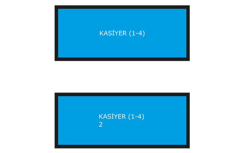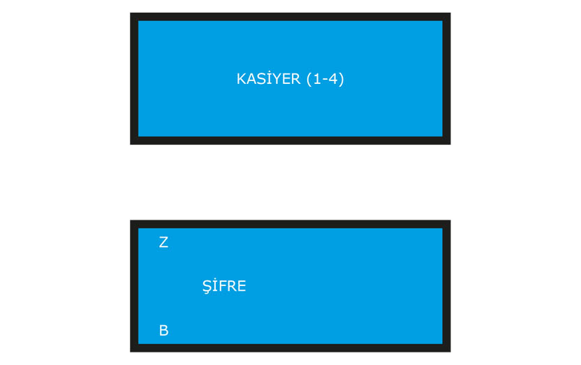 1 : KASİYER A 2 : KASİYER B 3 : KASİYER C 4 : KASİYER D