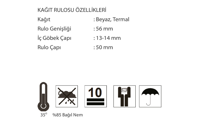 TSE onaylı termal kağıt kullanmak mecburidir. Termal kağıtları serin, kuru ve karanlık ortamlarda muhafaza ediniz.