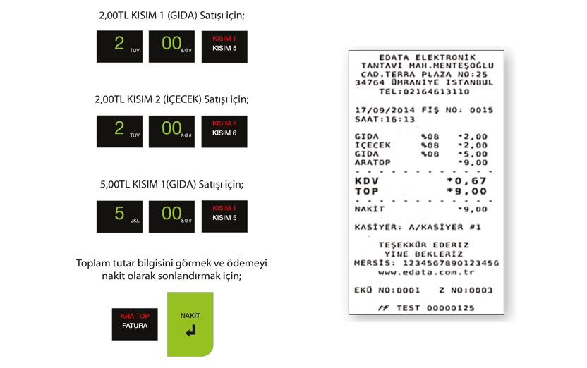Fiyat girerek KISIM satışı gerçekleştirmek için tuş takımı üzerinden sırasıyla yukarıdaki tuşlamalar yapılır.