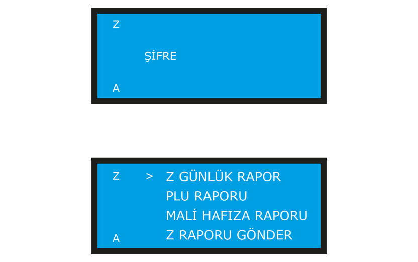 Örneğin yazar kasadan Z raporu alabilmek için: