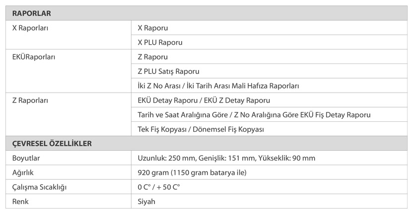 Not: Bu menünün kullanılması için, “Z Günlük Raporu” ve “Z PLU Raporunun” yazdırılmış olması gerekmektedir.