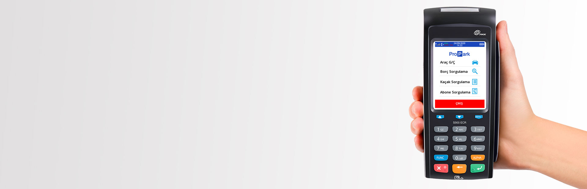 S900 ECR – OTP üzerine çalışan uygulama ile ProPark Merkezi Yönetim Panelinde yapılan tanımlara göre online ya da offline olarak araç giriş/çıkış, ödeme, kayıp/kaçak tahsilatı, sorgulama ve raporlama işlemleri yapılabilmektedir.